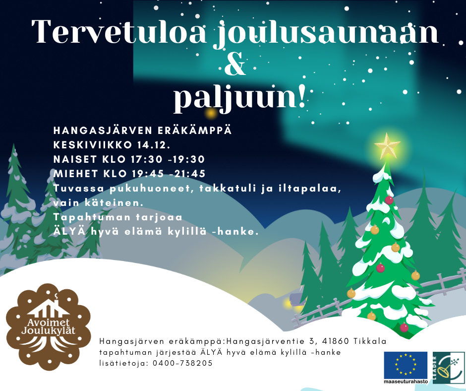Saunan tarjoaa ÄLYÄ hyvä elämä kylillä -hanke, jota rahoittaa Leader JyväsRiihi ry maaseuturahoituksella.
