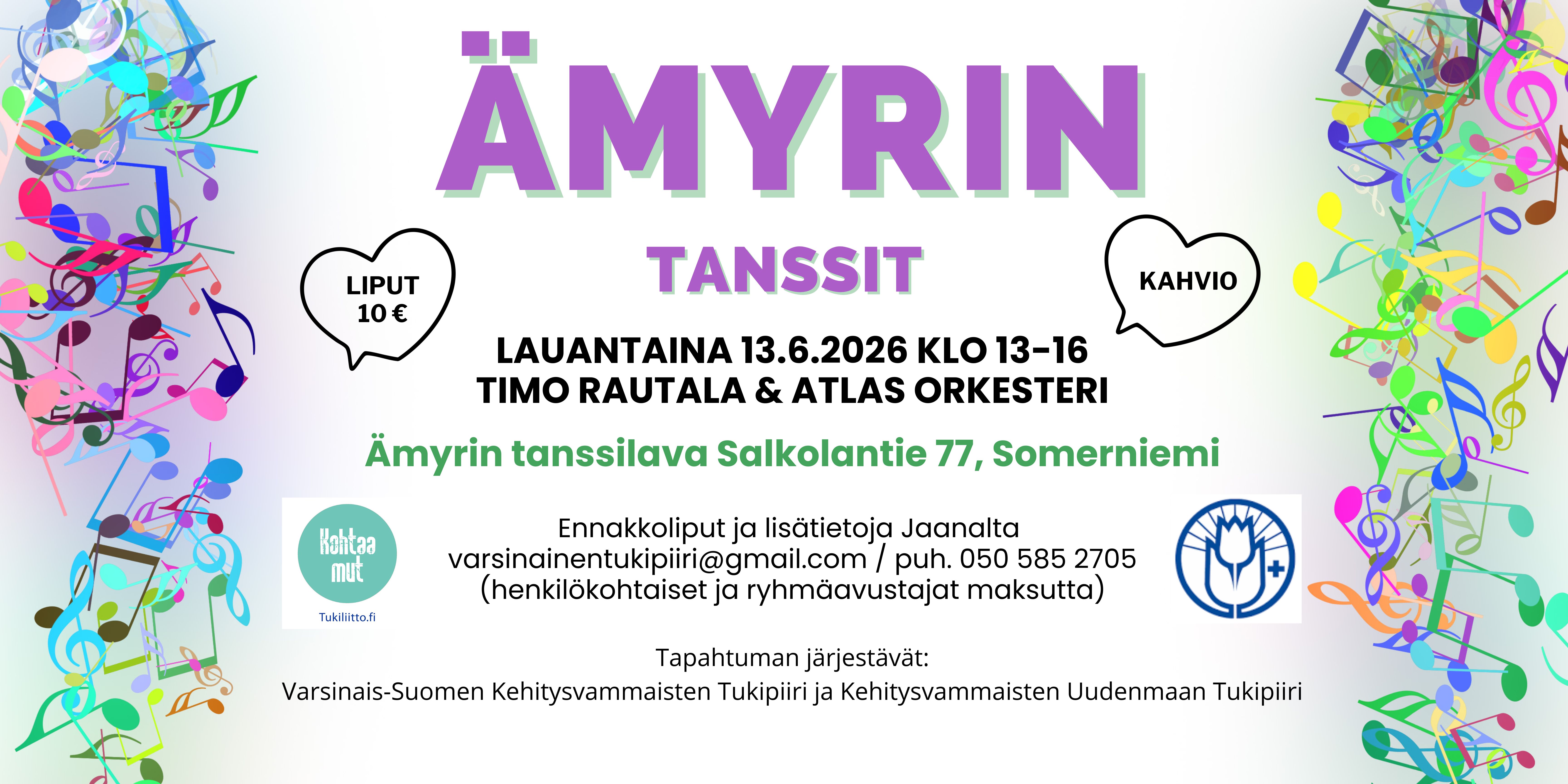 Tanssit järjestävät V-Suomen Kehitysvammaisten Tukipiiri ry ja Kehitysvammaisten Uudenmaan Tukipiiri ry