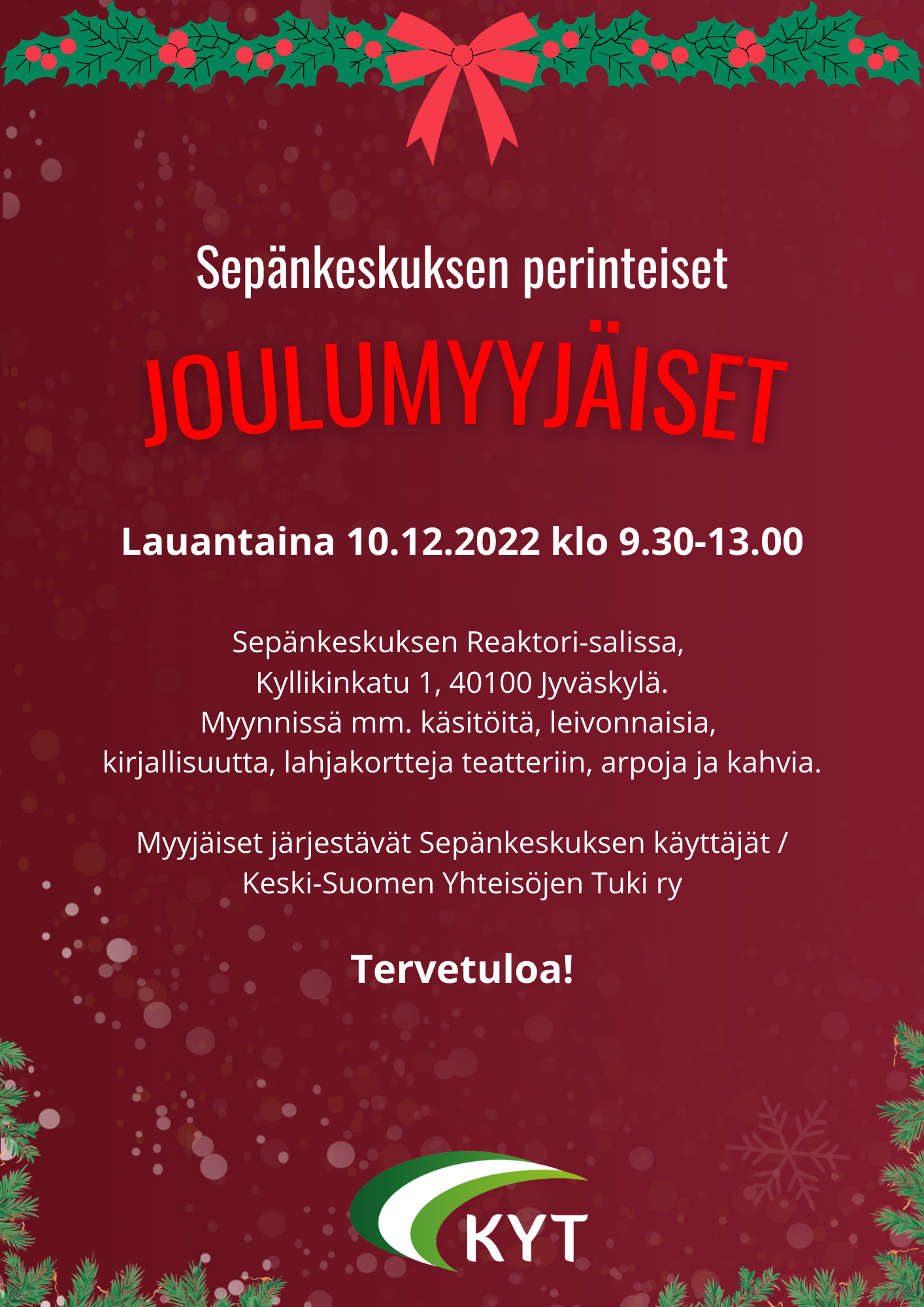 Sepänkeskuksen perinteiset joulumyyjäiset. Myyjäiset järjestetään Sepänkeskuksen käyttäjien ja Keski-Suomen Yhteisöjen Tuki ry:n toimesta.