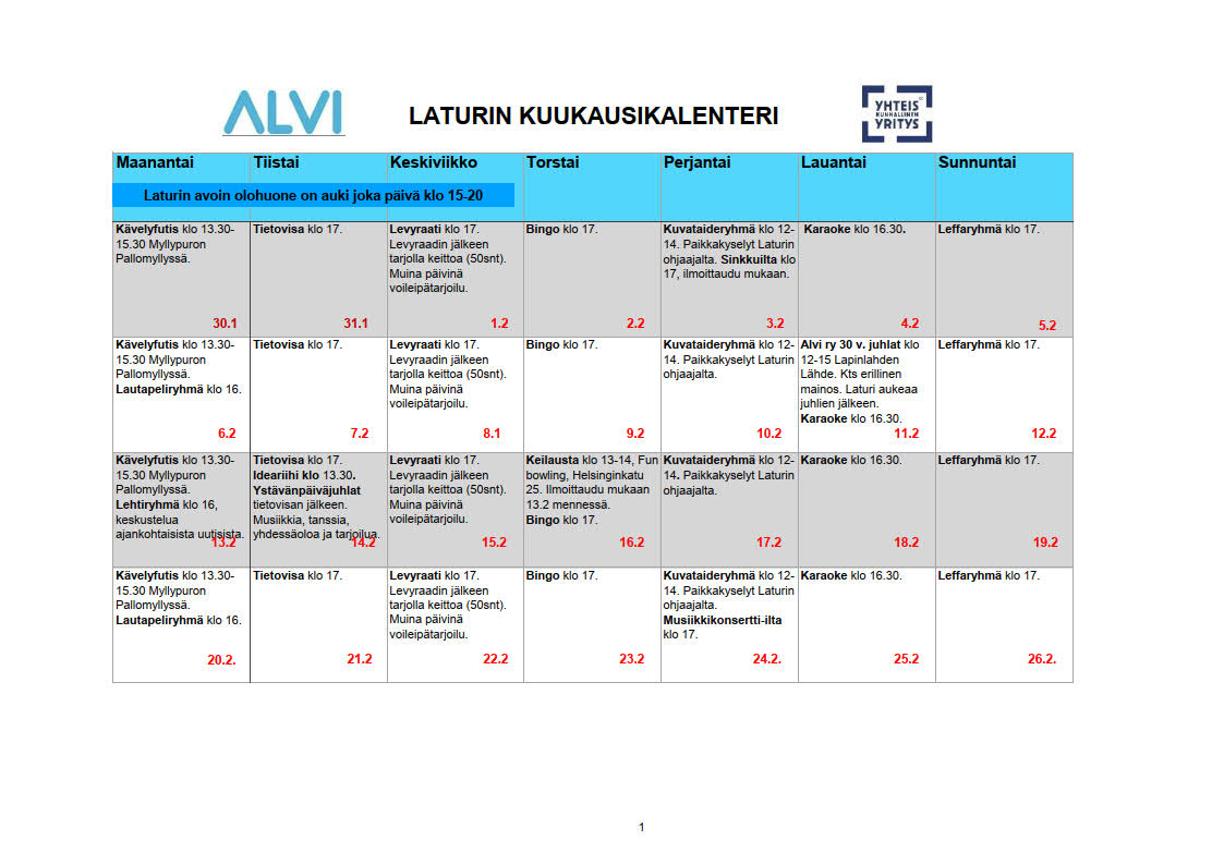 Laturin Tukiyhteisön Avoin olohuonetoiminta