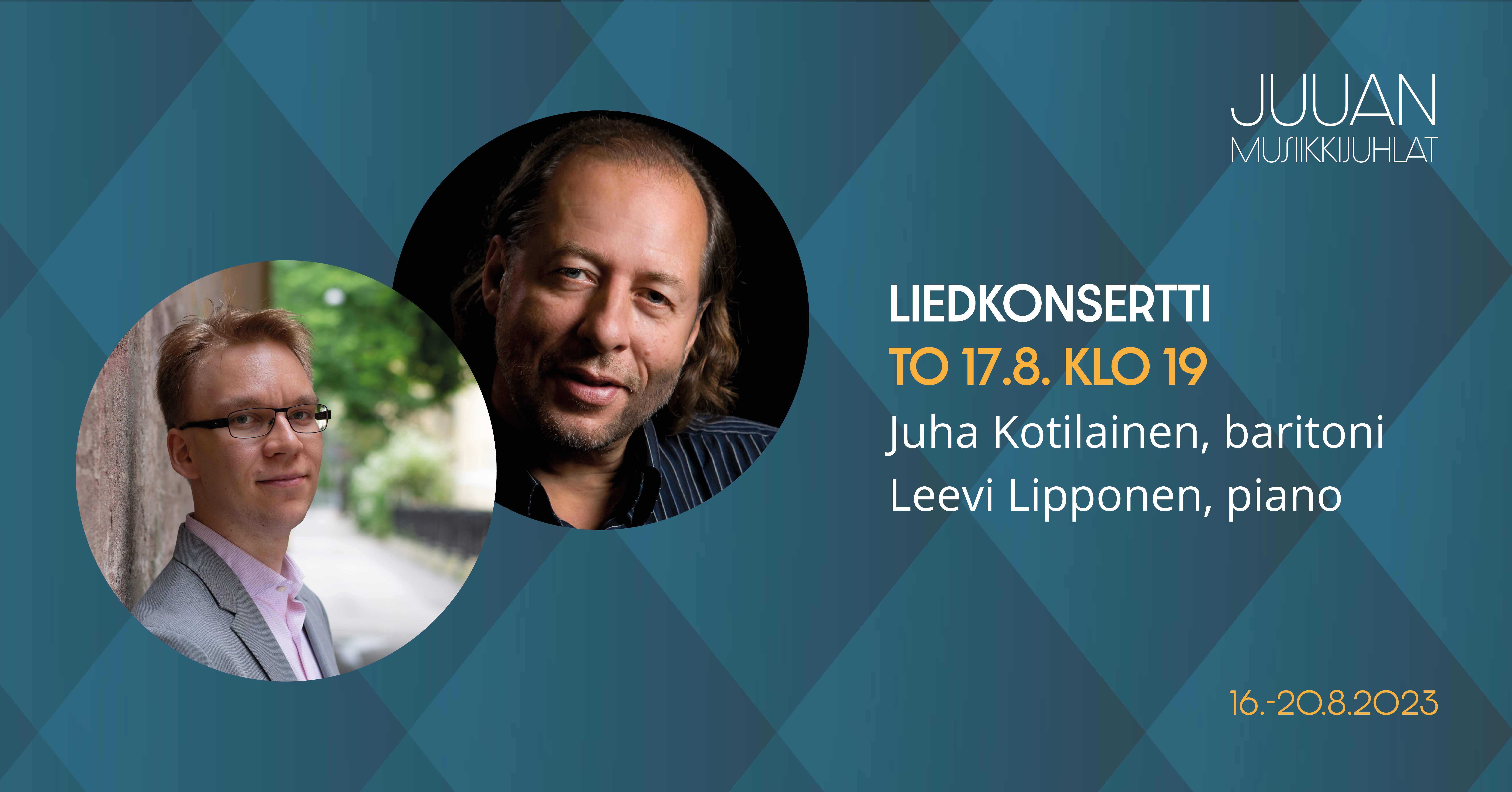 Juuan musiikkijuhlien liedkonsertissa esiintyy Juha Kotilainen, baritoni ja Leevi Lipponen, piano.