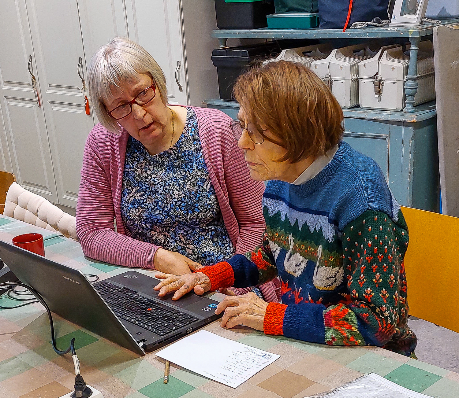 Vaasan Setlementin vapaaehtoistoimijat Seniorinörtit opastavat ikäihmisiä digipulmissa.