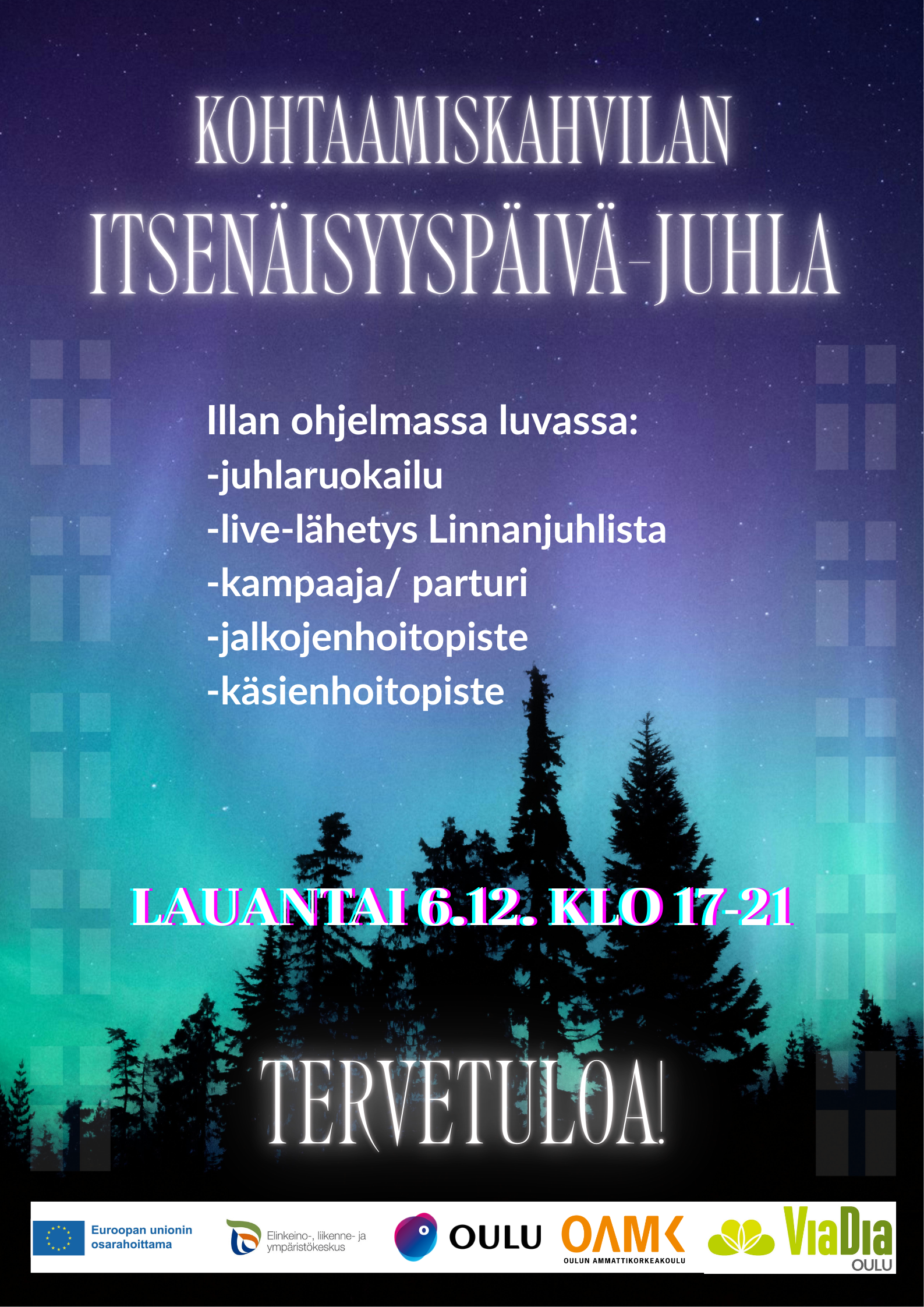 ViaDia Oulu järjestää Itsenäisyyspäivä juhlan Kadulta kohtaamisiin- hankeen kanssa. Hankeen kautta yhteistyössä ovat mukana OAMK, ESR, ELY-keskus, Oulun kaupunki.