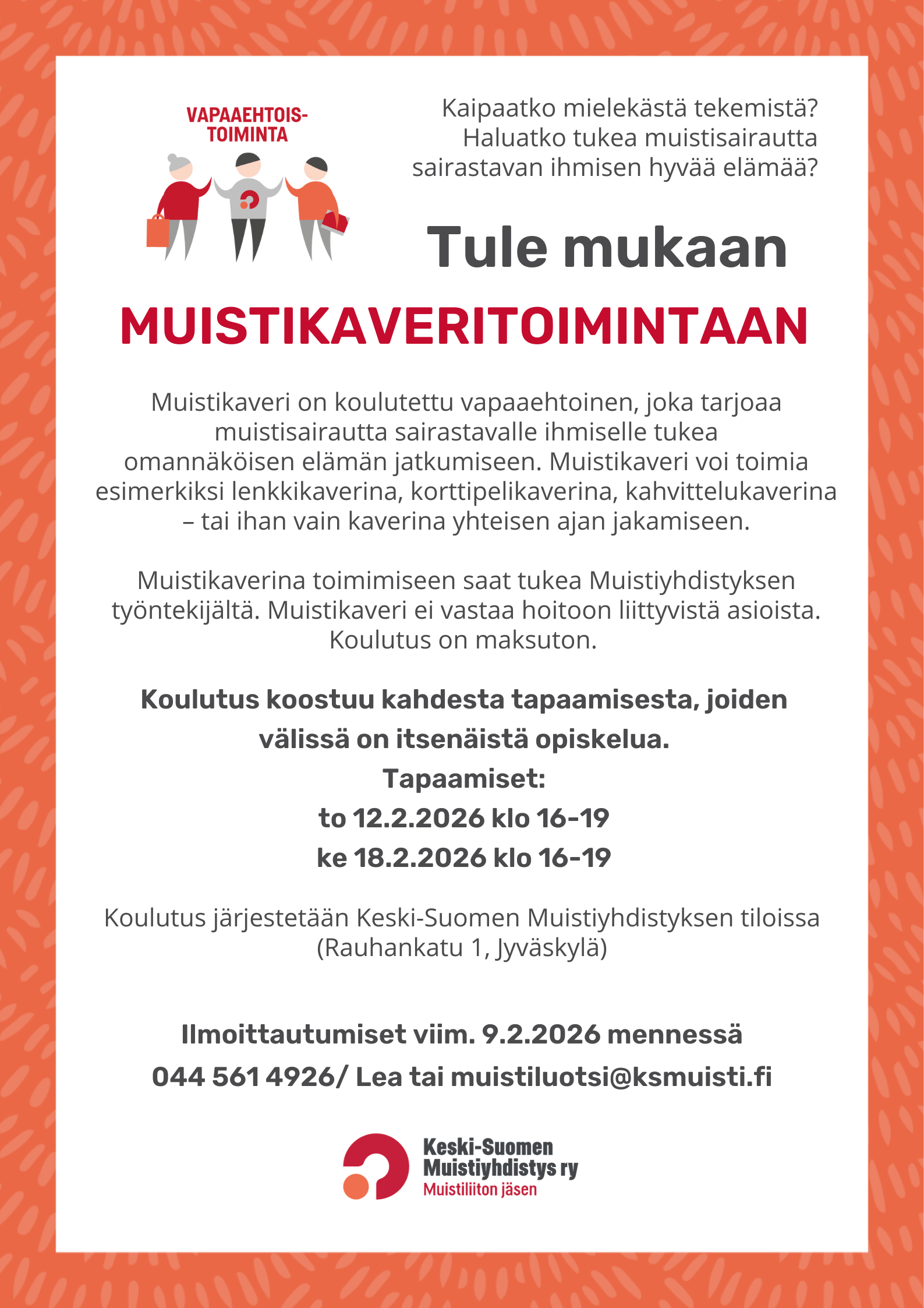 Muistikaverikoulutus uusille vapaaehtoisille.