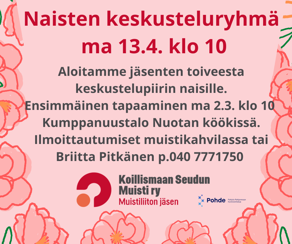 Naisten keskusteluryhmä maanantaina 13.4. klo 10