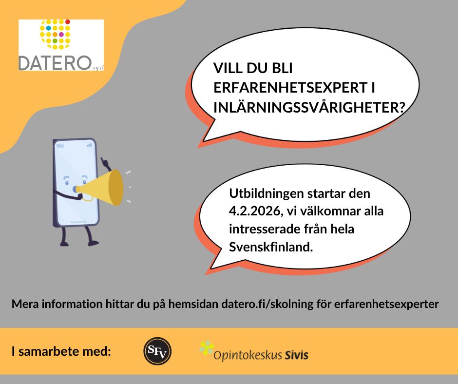 Vill du bli erfarenhetsexpert inom inlärningssvårigheter? Kursen ordnas nu för första gången på svenska, i Finland.