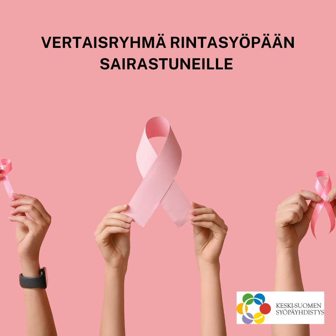 Vertaisryhmä rintasyöpään sairastuneille keskiviikkoisin 28.1., 25.2., 25.3., 29.4. ja 27.5. klo 17.00–18.30. Ohjaajana vertaisohjaaja Else Turtiainen ja Eija Takala. Toteutus yhteistyössä Rintasyöpäyhdistys Europa Donnan kanssa.