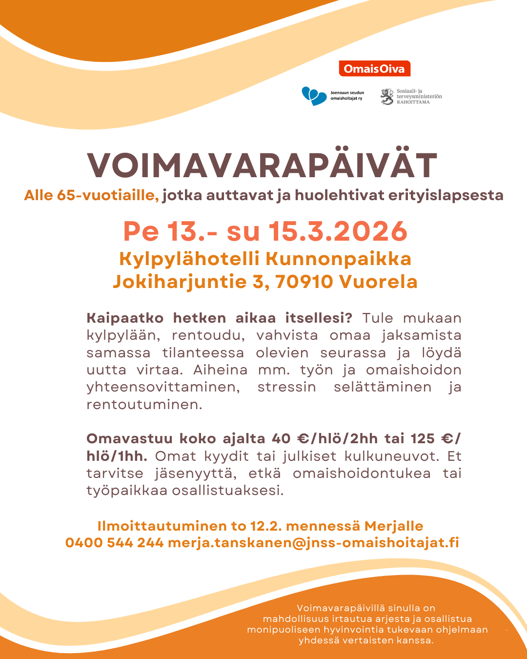 merja.tanskanen@jnss-omaishoitajat.fiIlmoittautumispuhelinnumero