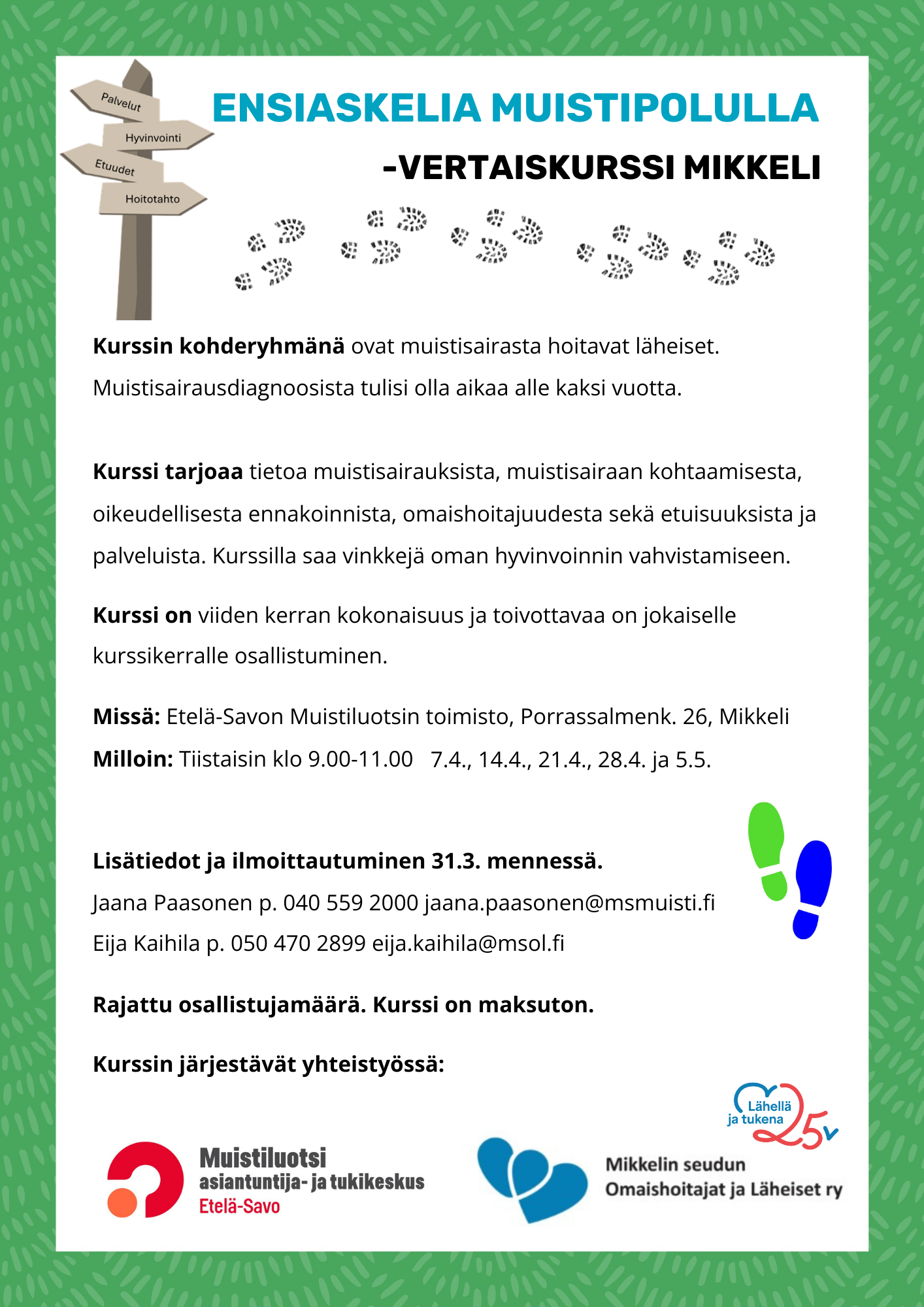 Ensiaskelia Muistipolulle - kurssi muistisairaan omaiselle
