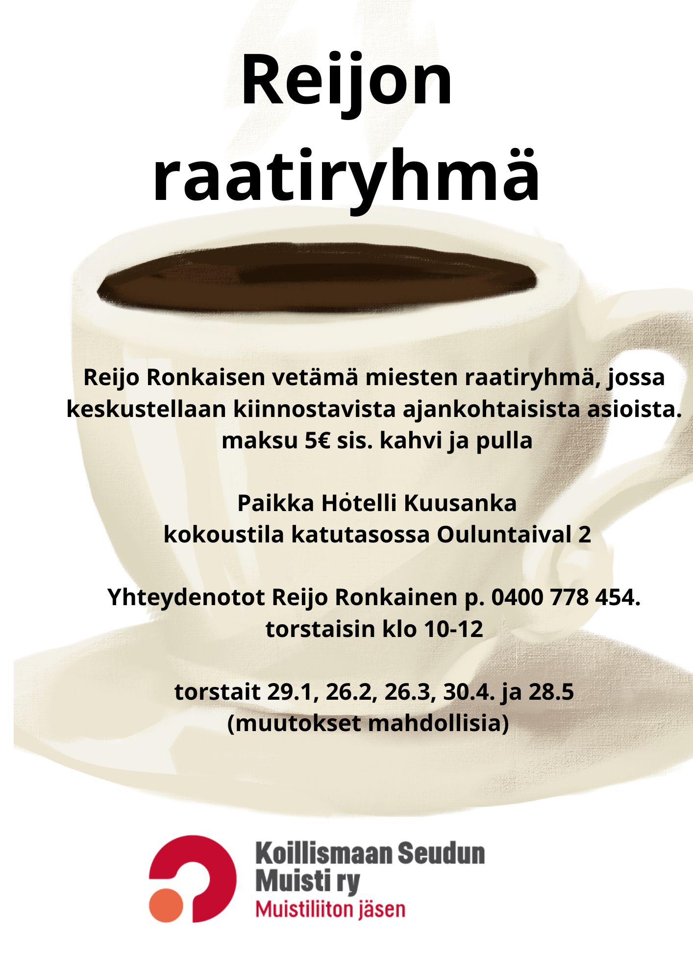Reijo Ronkaisen vetämä miesten raatiryhmä, jossa keskustellaan kiinnostavista ajankohtaisista asioista.