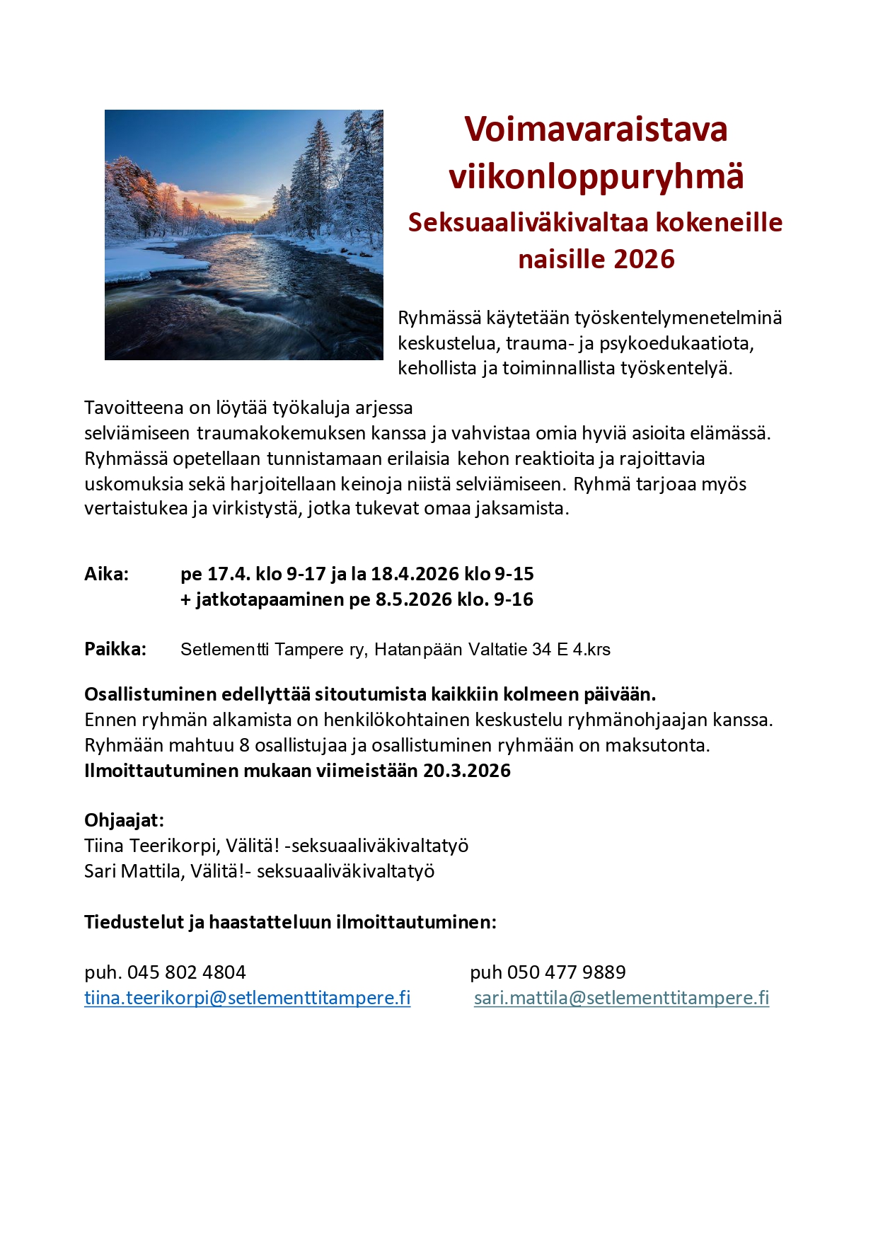 + jatkotapaaminen pe 8.5.2026 klo. 9-16