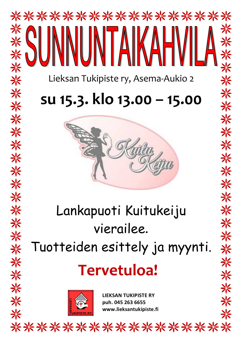 Sunnuntaikahvila Su 15.3-26 klo. 13-15