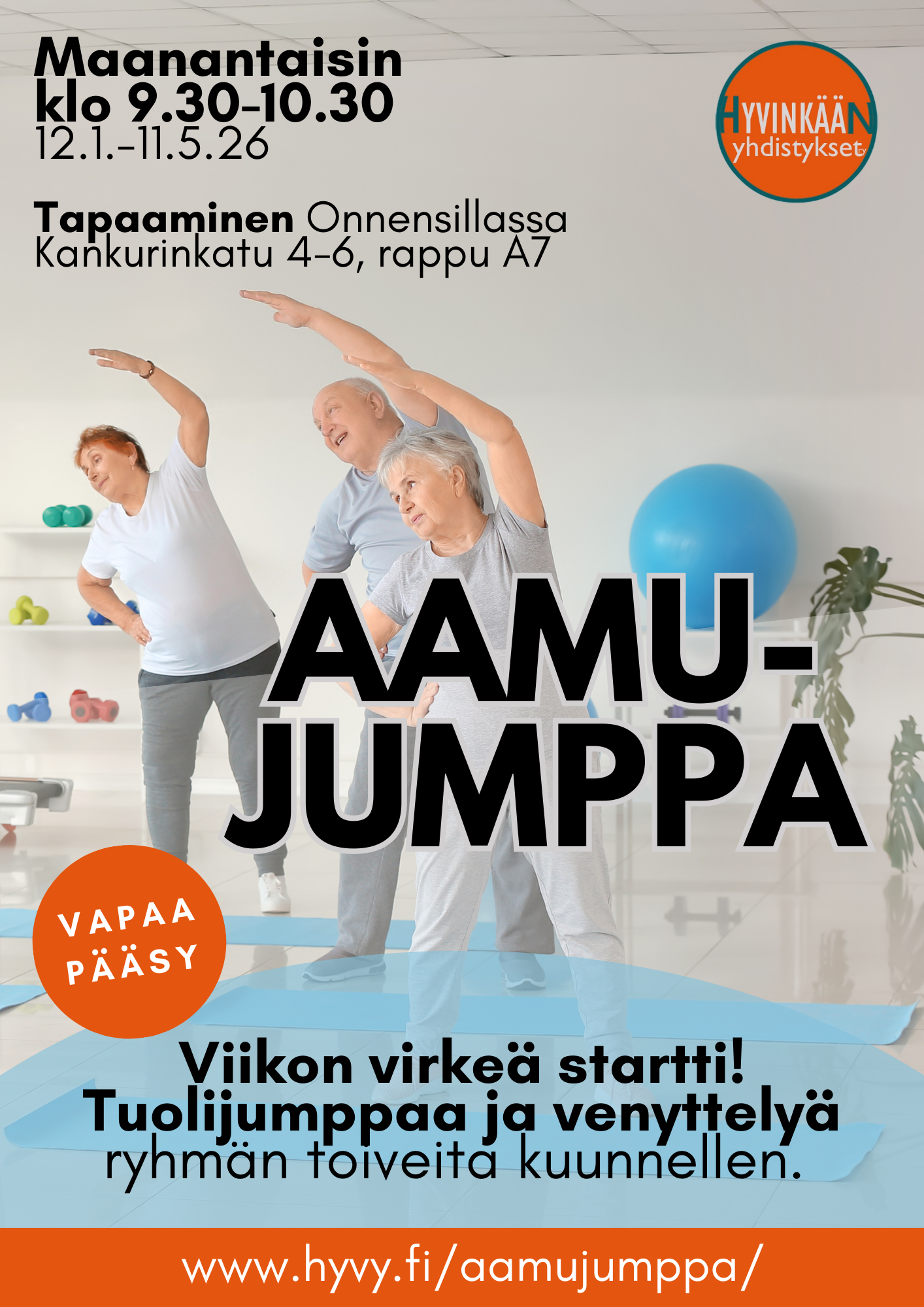 Aamujumppa tarjoaa mahdollisuuden aloittaa päivä liikunnallisissa merkeissä.