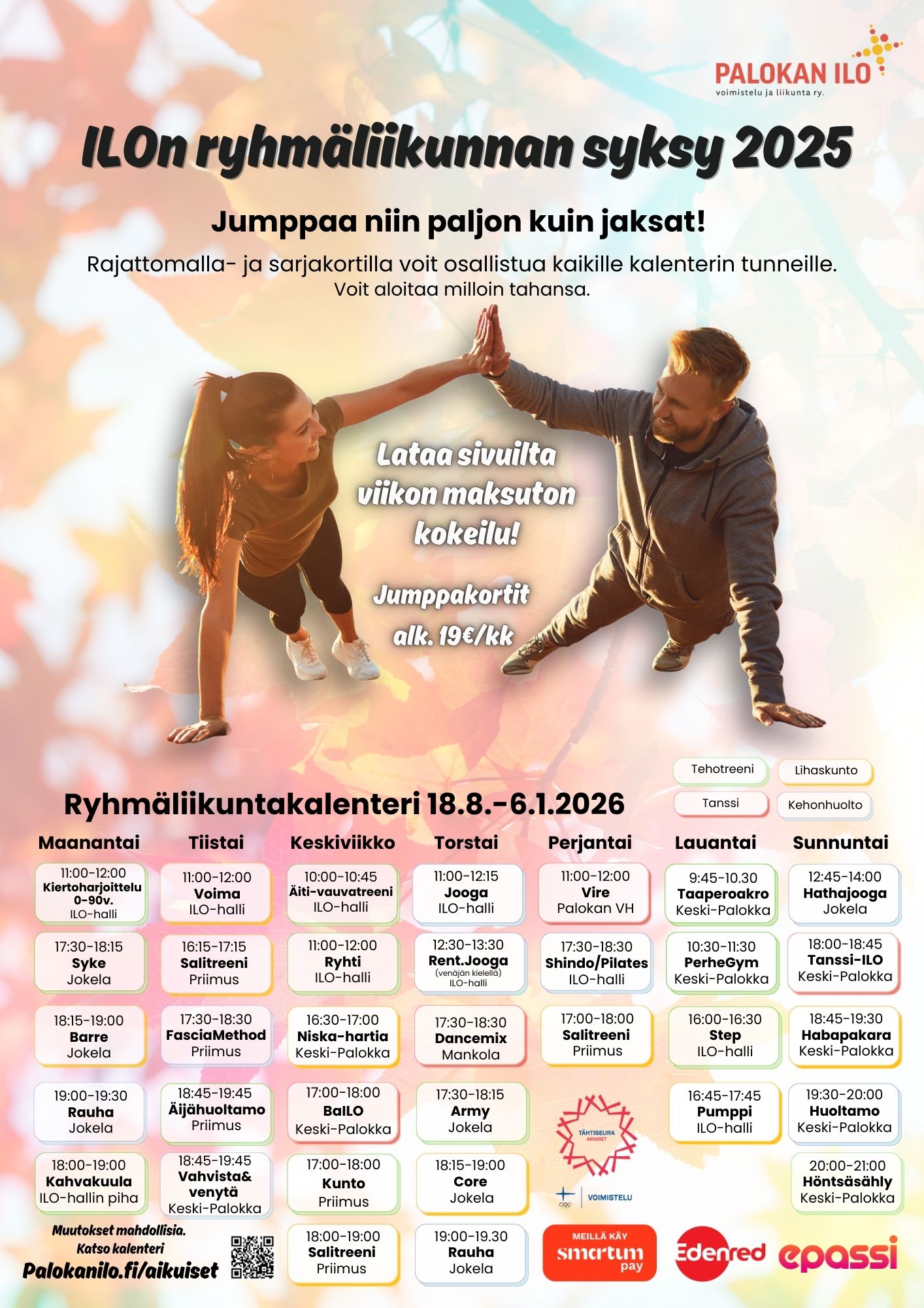 Palokan Ilon aikuisten ryhmäliikuntatunnit syksy 2025