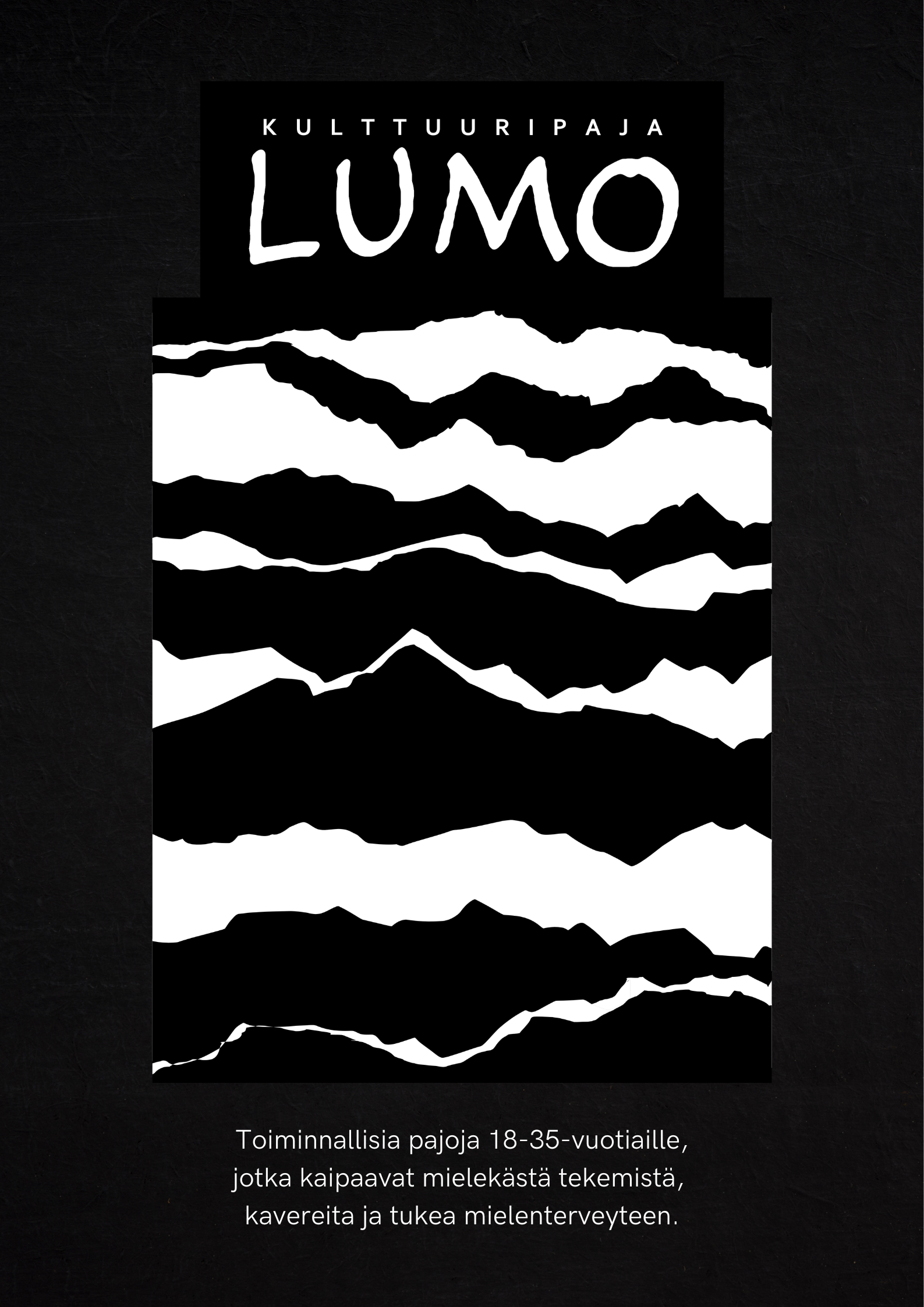 Porin Kulttuuripaja Lumo tarjoaa 18-35–vuotiaille nuorille aikuisille luovaa ryhmätoimintaa, mahdollisuuden tavata uusia ihmisiä ja tukea mielenterveyteen. Toiminnassa osallistujat voivat osallistua muun muassa taide-, käsityö-, peli-, bändi- ja liikuntapajoihin. Toiminta antaa mahdollisuuden toteuttaa itseään omien mieltymysten, taitojen ja voimavarojen puitteissa. Kulttuuripajan toiminta perustuu vapaaehtoisuuteen ja siihen, mitä juuri sinä haluat tehdä.