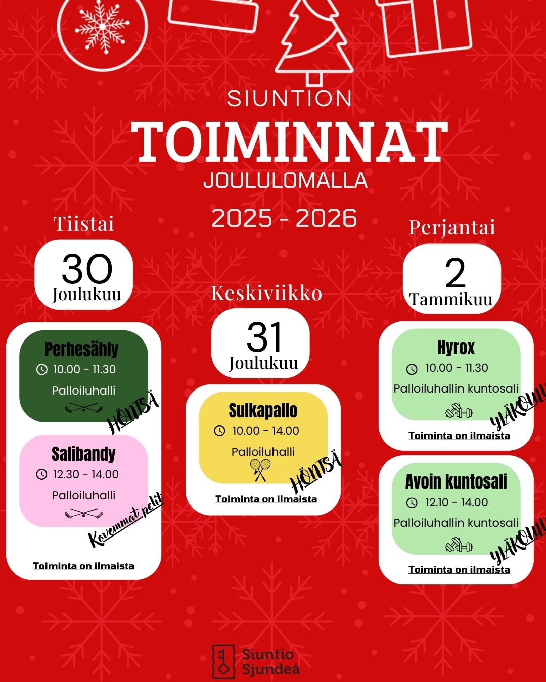 Avkopplande aktiviteter för Siuntobor under jullovet.