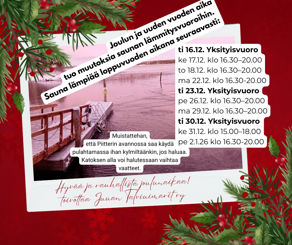 Juuan Talviuimareiden sauna lämpiää Piitterissä keskiviikkoisin ja torstaisin klo 16.30-20!