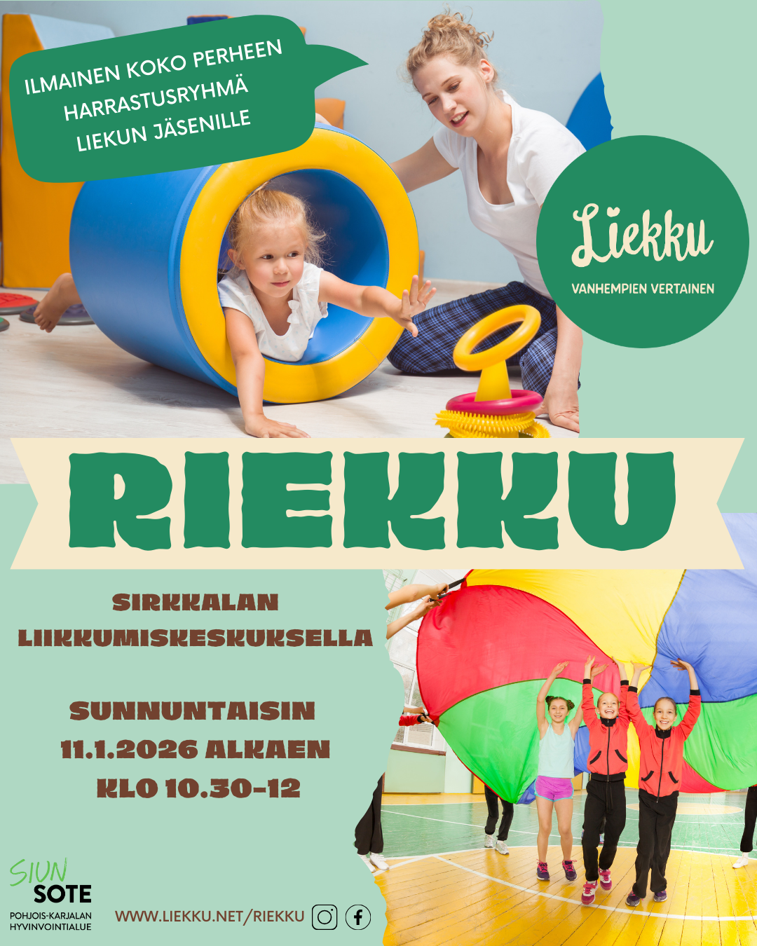 Liikuntaryhmä Riekku on Liekku ry:n jäsenille tarkoitettu ilmainen harrastusryhmä, johon voi tulla koko perheen voimin.